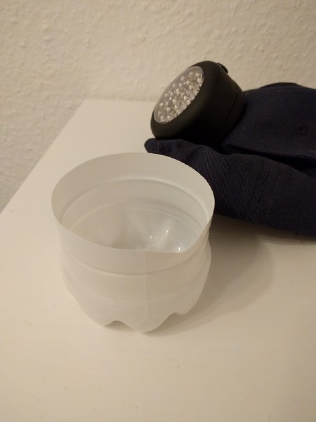 Reinigen und halbieren der weissen PET Kakaoflasche.