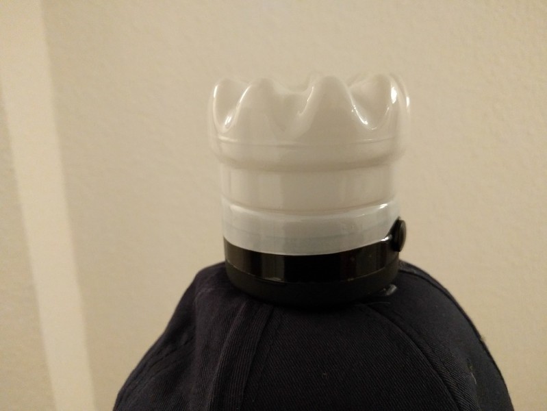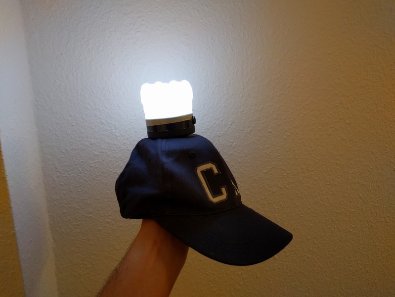 DIe Fixierung mit 2 Schräubchen ist nicht optimal, ich würde empfehlen ein dünnes Stück Kunststoff als Unterlegscheibe zwischen Mütze und Schraube zu machen. So wird die Gefahr für das ausreissens des Stoffes minimiert. Der Versuch mit Heisskleber zusätzlichen Halt zwischen Mütze und Lampe zu machen war erfolglos. Die Oberfläche der Lampe ist sehr Kleberesistent, die Mütze dafür verschmiert.