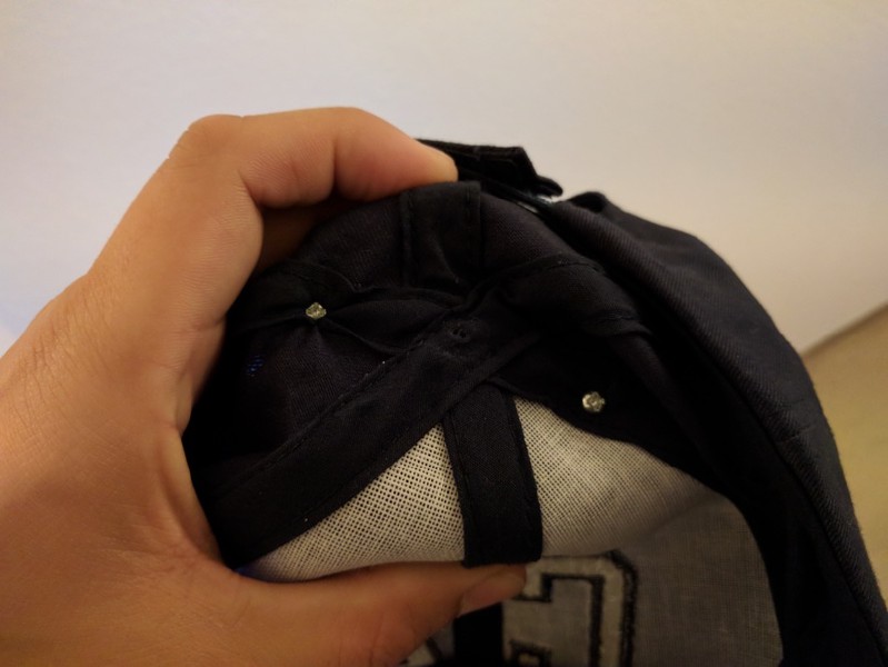 Entfernen des mittigen Knopfes auf dem Basecap mit einem Seitenschneider